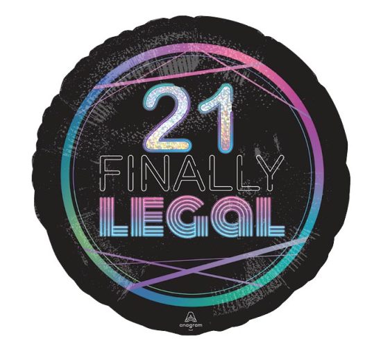 21 Finally Legal Mylar Balloon 18 Inch Inflated, matching color balloon weight included – perfect for Birthday gift and Party decoration. Combine with our Solid Color Shapes and Latex Balloons.