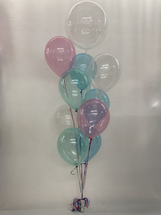 Clear Fantastic Latex Balloon Bouquet Inflated with helium and weight.