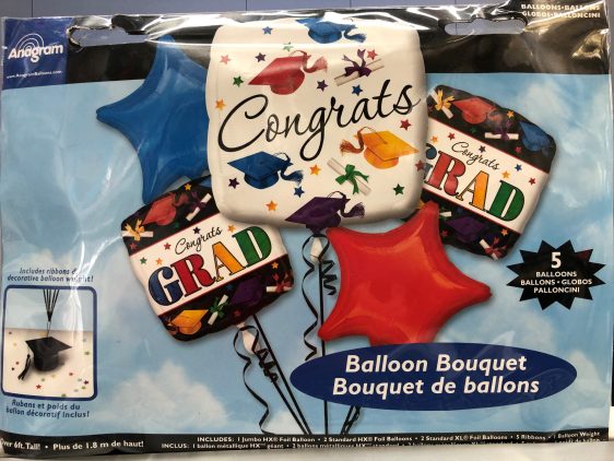Colorful Congrats Grad  Mylar Balloon Bouquet  – great as a gift or decorating graduation party event.