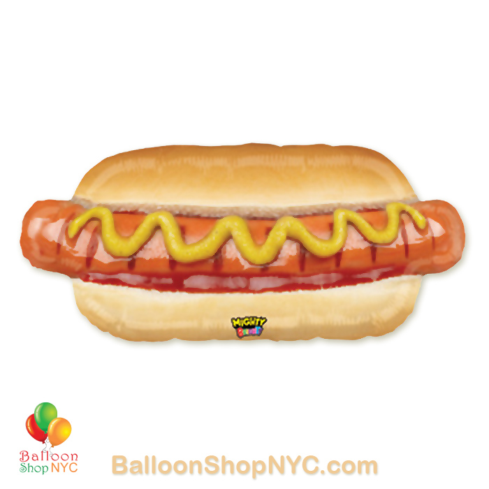 NEW! Mighty Bright Hotdog Jumbo Funny Mylar Balloon 34 inch Inflated – fun stuff for Birthday Boy or Girl who is fond of American Classic. Add Bright Colors Latex Balloon Bouquet and few Solid Shapes Mylar Balloons and your party will be a great success. Check out other Funny balloons from our Menu to get more ideas.
