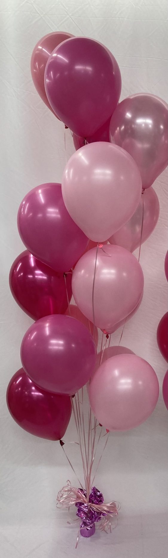 - 15 – multi pink 11″ latex balloon with hi-float.