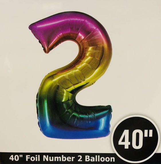 Number 2 Rainbow Foil Balloon 40 inch Inflated with Weight