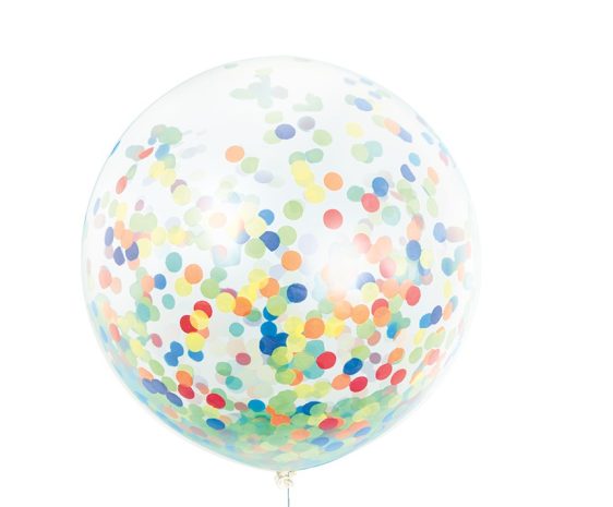 Rainbow Confetti with Clear Balloon 36 inch Latex Inflated